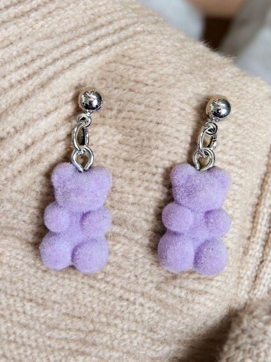 Purple Teddy Bear Stud Earrings Dainty Jewelry For Day To Night Wear Sparkling Finish Gift For Her