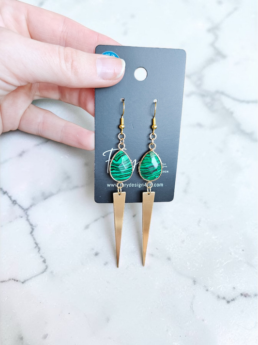 Gemstone Teardrops with Long Golden Point Dangle Earrings