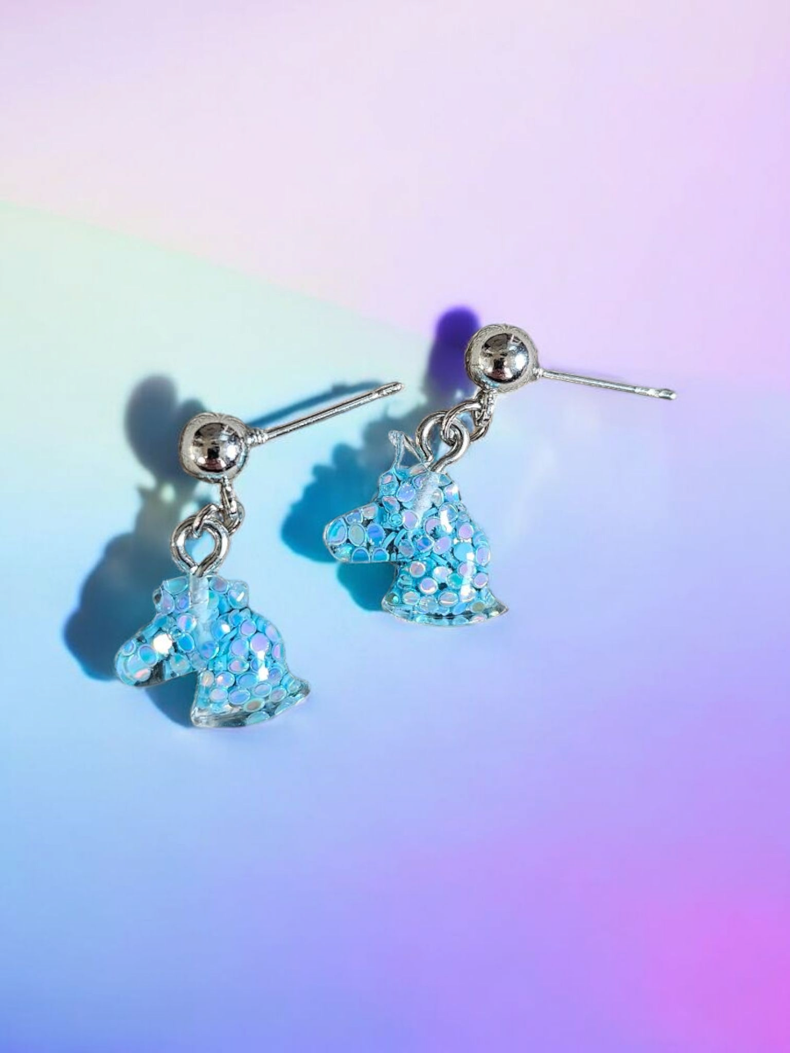 Blue Glitter Unicorn Post Dangle Earrings