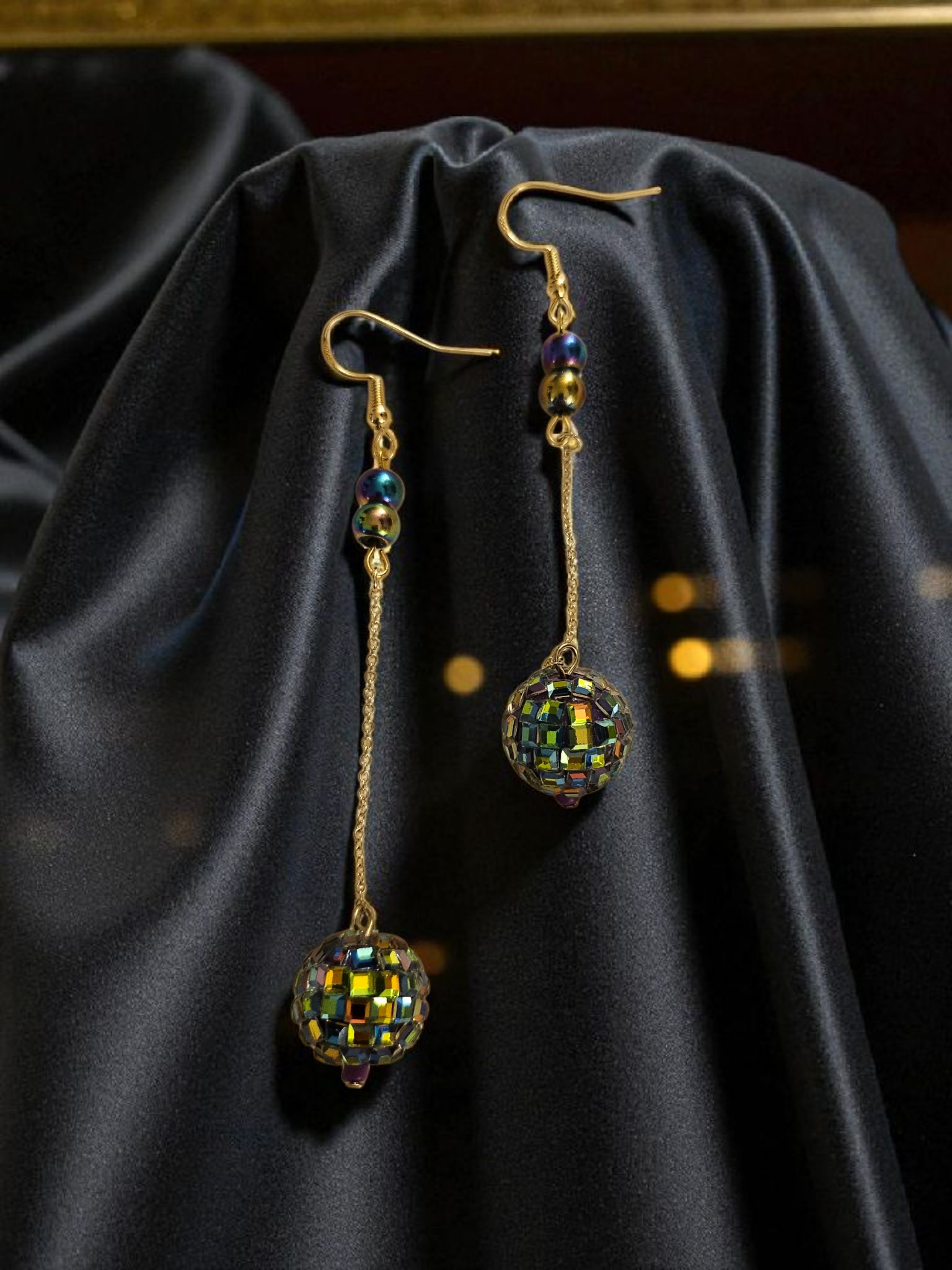 Introducing the Intergalactic Disco Dangles - the perfect accessory for any space adventure! These dazzling dangles bring a touch of interstellar glamour with their celestial-inspired design. Crafted with precision, they are a must-have for any fashion-forward galactic traveler. Shine bright and make a statement with the Intergalactic Disco Dangles.