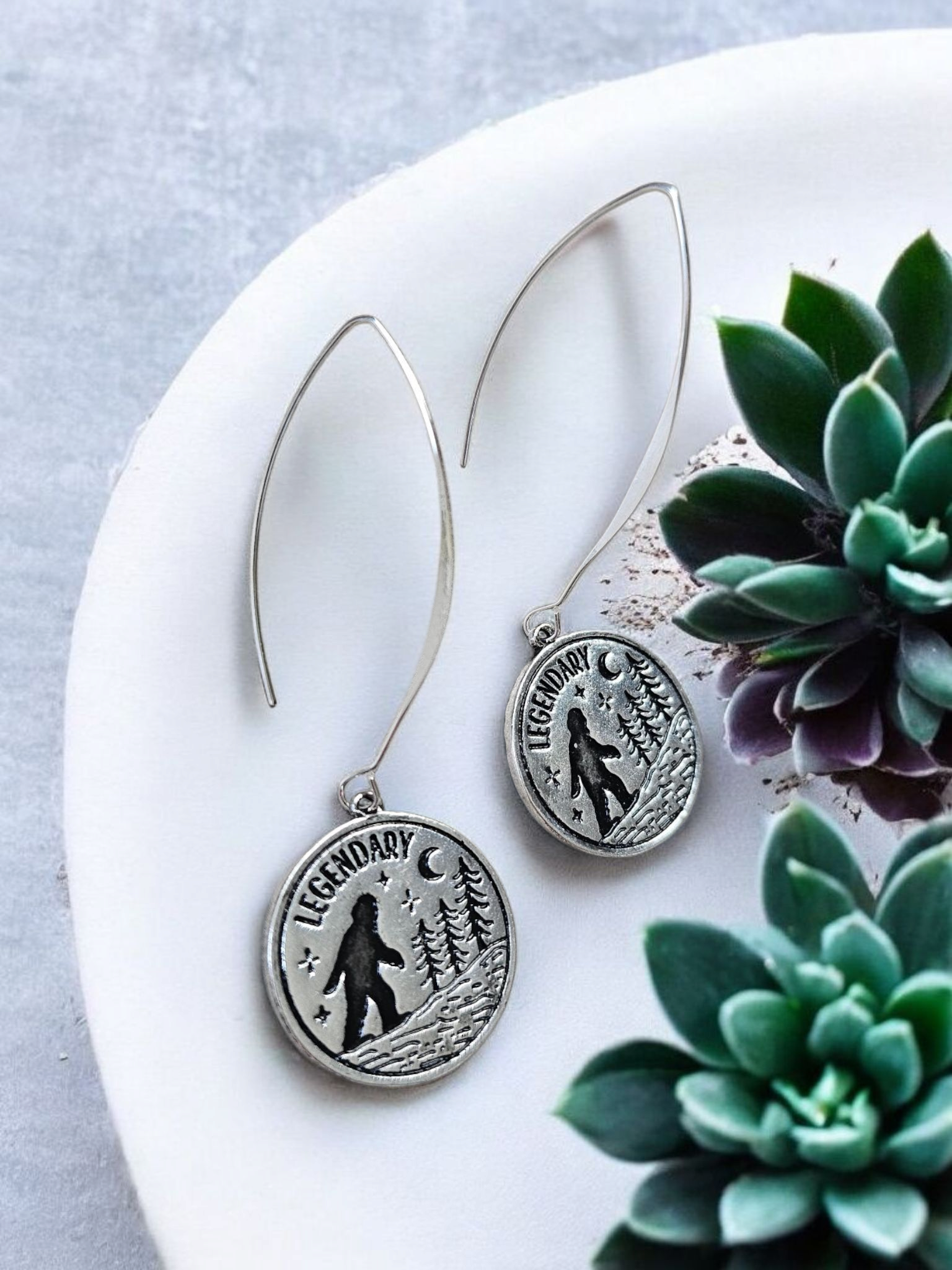 Crafted with precision, these Legendary Sasquatch V-Hook Dangle Earrings combine mythical intrigue with elegant design. The distinctive V-hook mechanism ensures secure wear while allowing natural movement. Each earring features detailed Sasquatch imagery, making them a conversation-starting accessory for folklore enthusiasts and fashion-forward individuals alike. Premium materials guarantee durability without sacrificing lightweight comfort for all-day wear.